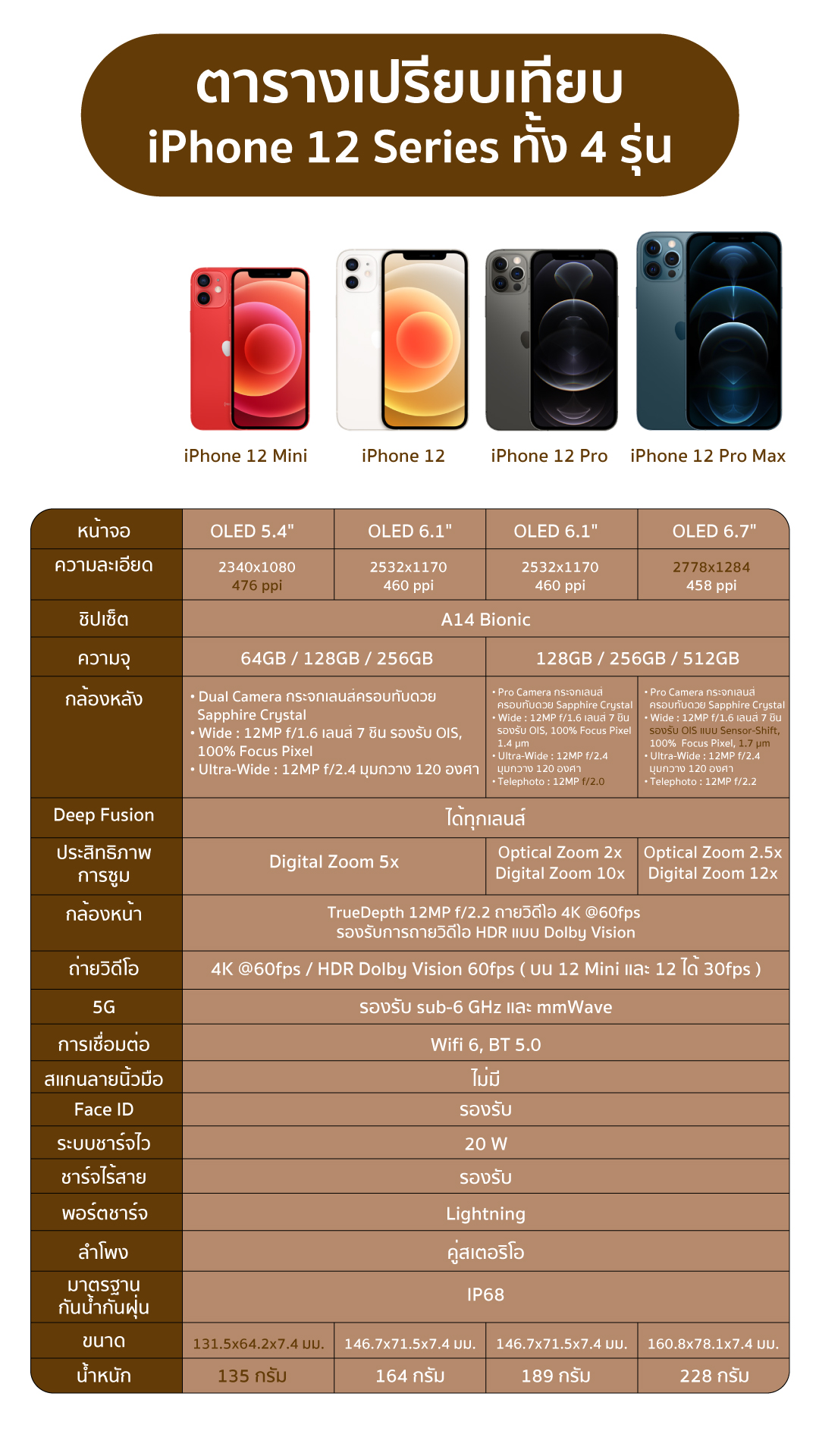 ตารางเปรียบเทียบสเปก iPhone 12 Series