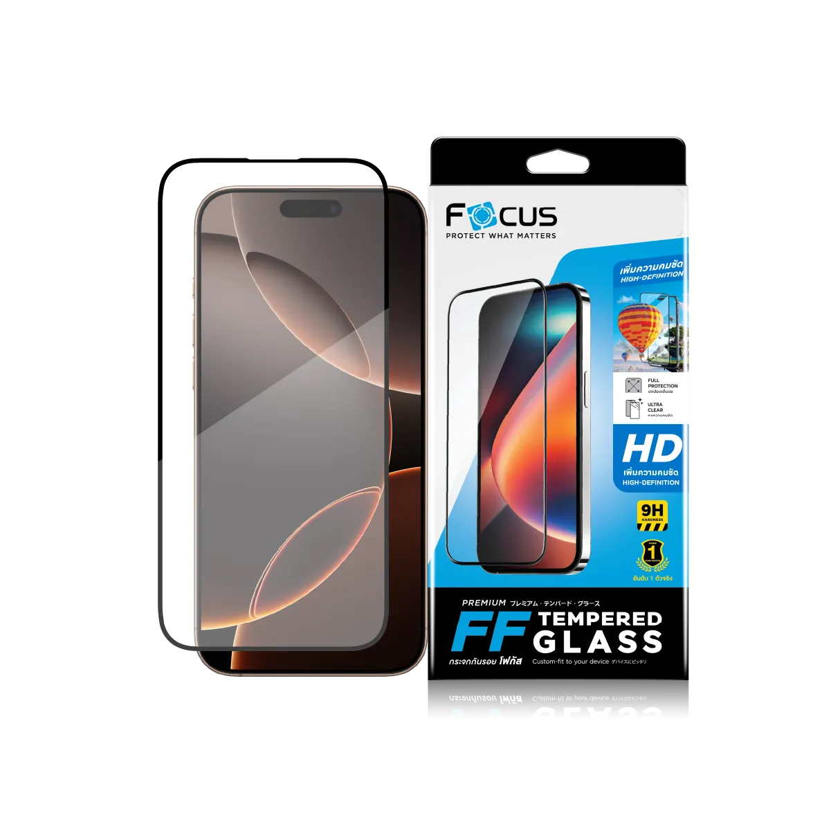 ฟิล์มกระจก Focus TG FF ขอบดำ เหมาะสำหรับผู้ที่ต้องการฟิล์มมาตรฐานคุณภาพสูงที่ให้ การปกป้องเต็มจอ คุ้มค่า และดูหรูหรา
