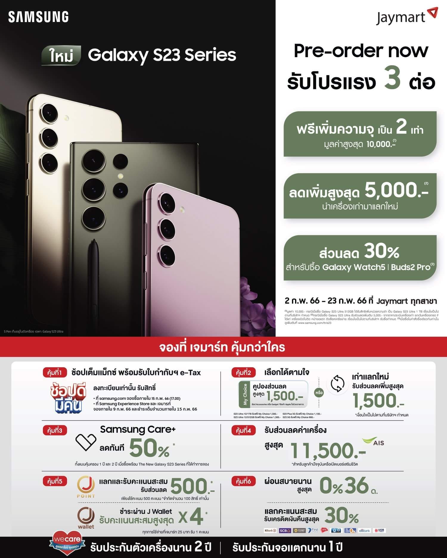 โปรโมชั่นสั่งจอง Samsung S23 Series กับตัวแทนจำหน่ายอื่นๆ Jaymart