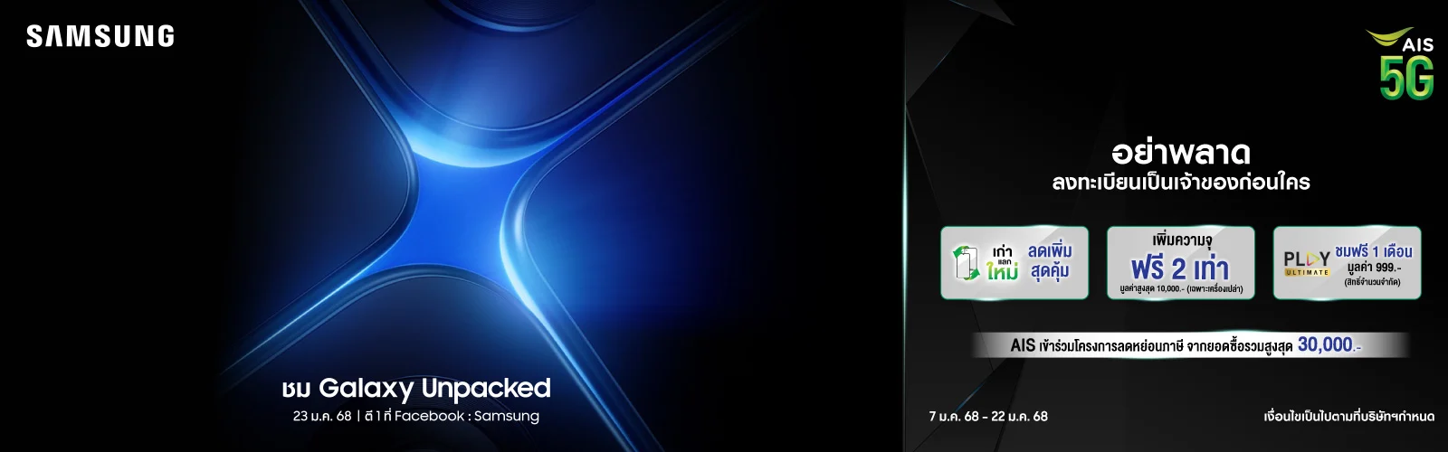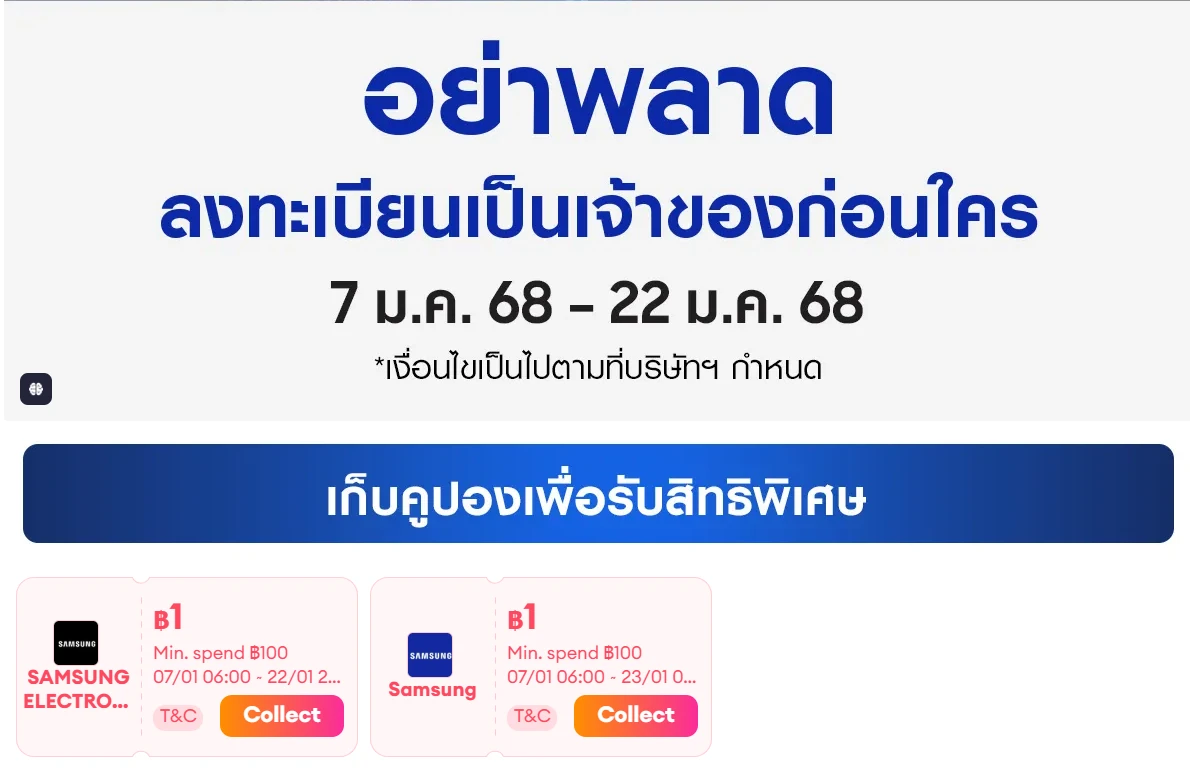 - Samsung Brand Store: ลดเพิ่ม 3,000 บาท