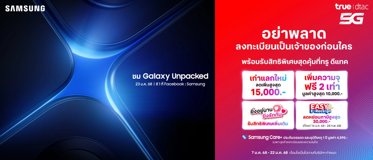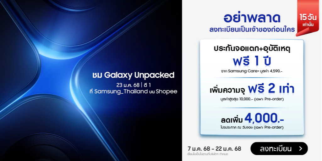 - ประกันจอแตก + ประกันอุบัติเหตุ Samsung Care+ ฟรี 1 ปี