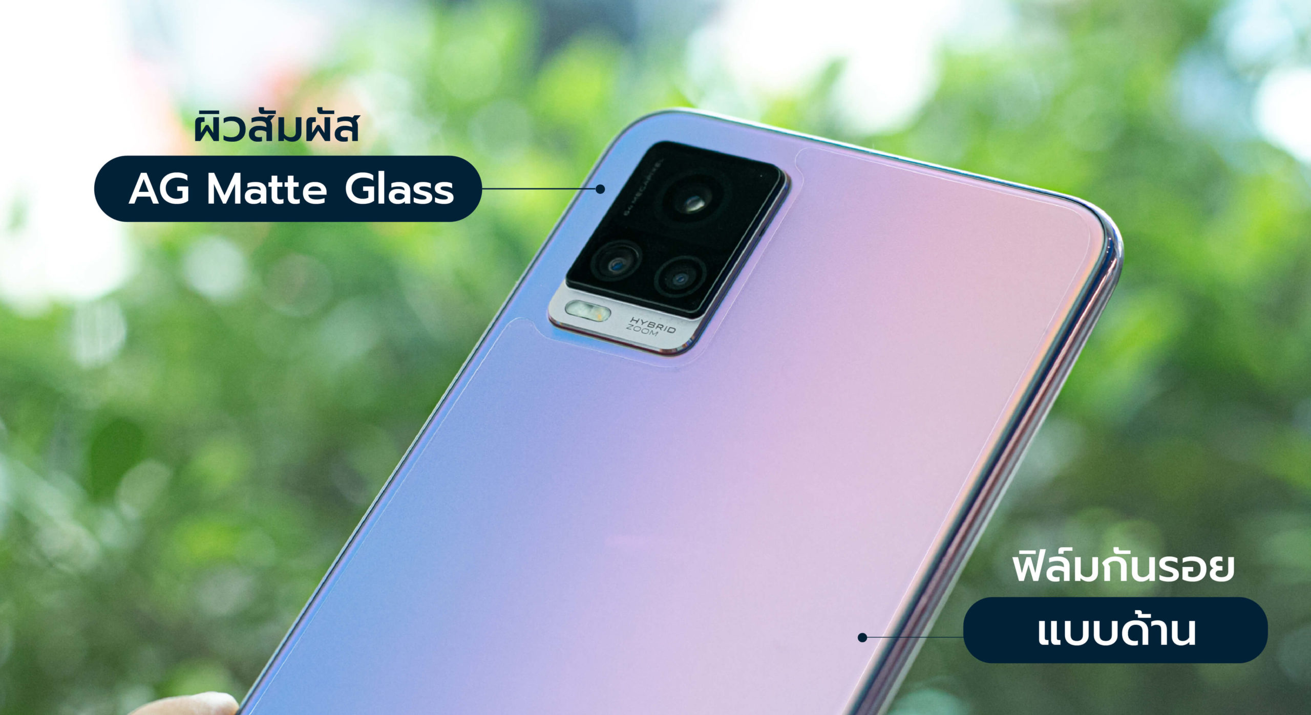 เริ่มจากดีไซน์ของตัวเครื่องกันก่อนเลยนะครับ อย่างที่เกริ่นไปข้างต้น Vivo ได้ให้ความสำคัญเรื่องการออกแบบ เพื่อความสวยงาม โดดเด่น เข้ากับทุกไลฟ์สไตล์ของคุณ มีการไล่เฉดสีสันที่สวยงาม เมื่อสะท้อนกับแสงจะให้มิติที่แตกต่าง ส่วนด้านหลังตัวเครื่อง ใช้แนวคิด AG Matte Glass ให้ผิวสัมผัสแบบด้านที่มีความเรียบเนียนมากยิ่งขึ้น และเพื่อคงความสวยงามของผิวสัมผัสให้ยาวนานขึ้น แอดมินได้ทำการติด “ฟิล์มกันรอยด้านหลังแบบด้าน” เอาไว้ เพื่อป้องกันรอยขีดข่วนที่จะมาทำลายความสวยงามของตัวเครื่อง และที่สำคัญฟิล์มตัวนี้ ยังมีเทคโนโลยี Anti Fingerprint ที่ช่วยป้องกันรอยนิ้วมือ และลดคราบมันต่างๆ เวลาสัมผัสที่ด้านหลังเครื่องด้วยนะครับ โชว์สีของตัวเครื่องได้อย่างเต็มที่ แทบดูไม่ออกว่าติดฟิล์มทับลงไป ฟิล์มตัวนี้แถมให้ฟรี ในกล่องกระจกกันรอยโฟกัสทุกกล่อง ทุกรุ่นเลยนะครับ