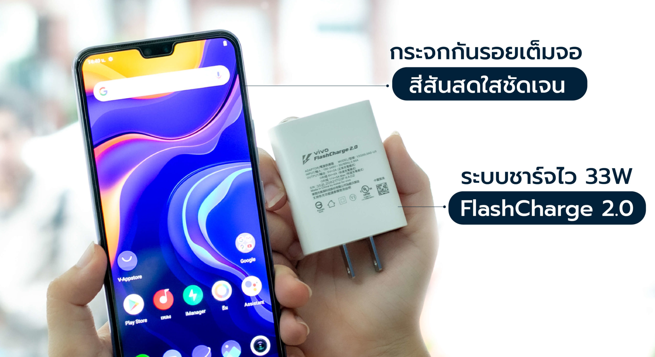 โดยจะช่วยให้คุณยืดเวลาการใช้งานสมาร์ทโฟนให้นานยิ่งขึ้นไปอีก หากแบตเตอรี่ใกล้หมด ซึ่งระบบจะปิดการทำงานในส่วนของระบบที่ไม่จำเป็นออกไป นอกจากนี้ยังมีระบบชาร์จไว 33W Vivo FlashCharge 2.0 มาให้ด้วย ชาร์จไวกันแบบสุดๆ ไม่ถึงชั่วโมงเครื่องก็พร้อมใช้งานต่อได้แบบยาวๆ
