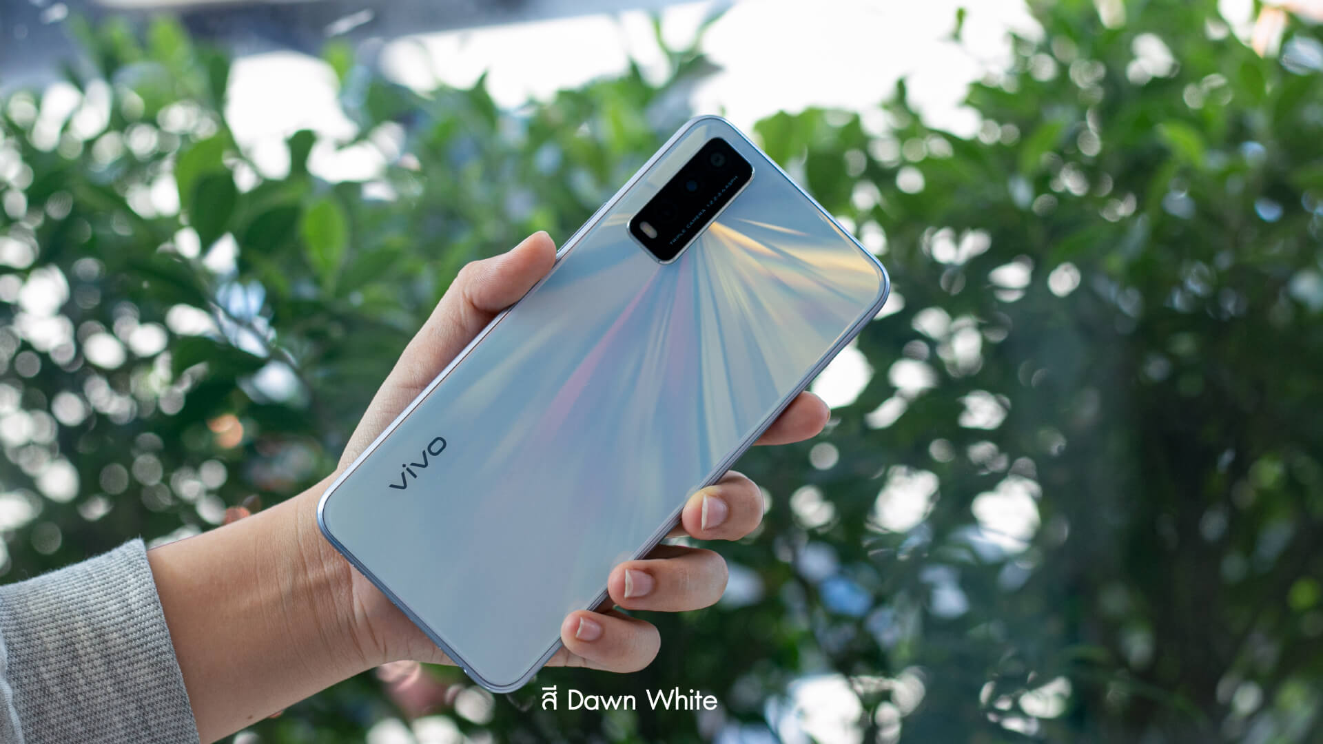 ตัวเครื่องที่ทางโฟกัสได้มา เป็นสีที่มีชื่อเรียกว่า “Dawn White” ครับ ตัวเครื่องด้านหลังเป็นพลาสติก แต่ทาง VIVO ก็ได้ดีไซน์ออกมาให้ดูพรีเมี่ยม จนแทบมองไม่ออกเลยว่าเป็นพลาสติก เป็นสีขาวที่มีการไล่สี เมื่อสะท้อนกับแสงแล้วจะทำให้เกิดมิติที่สวยงาม หรูหรามากๆ เลยล่ะครับ